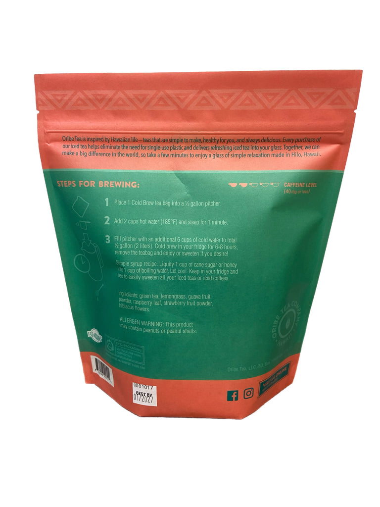 Ohana packs feature 12 large teabags that each brew a 1/2 gallon of iced tea at a time. Our traditional Cold Brew and Iced Teas feature 5 large teabags, so this is a much larger bag with more than double the amount of teabags!